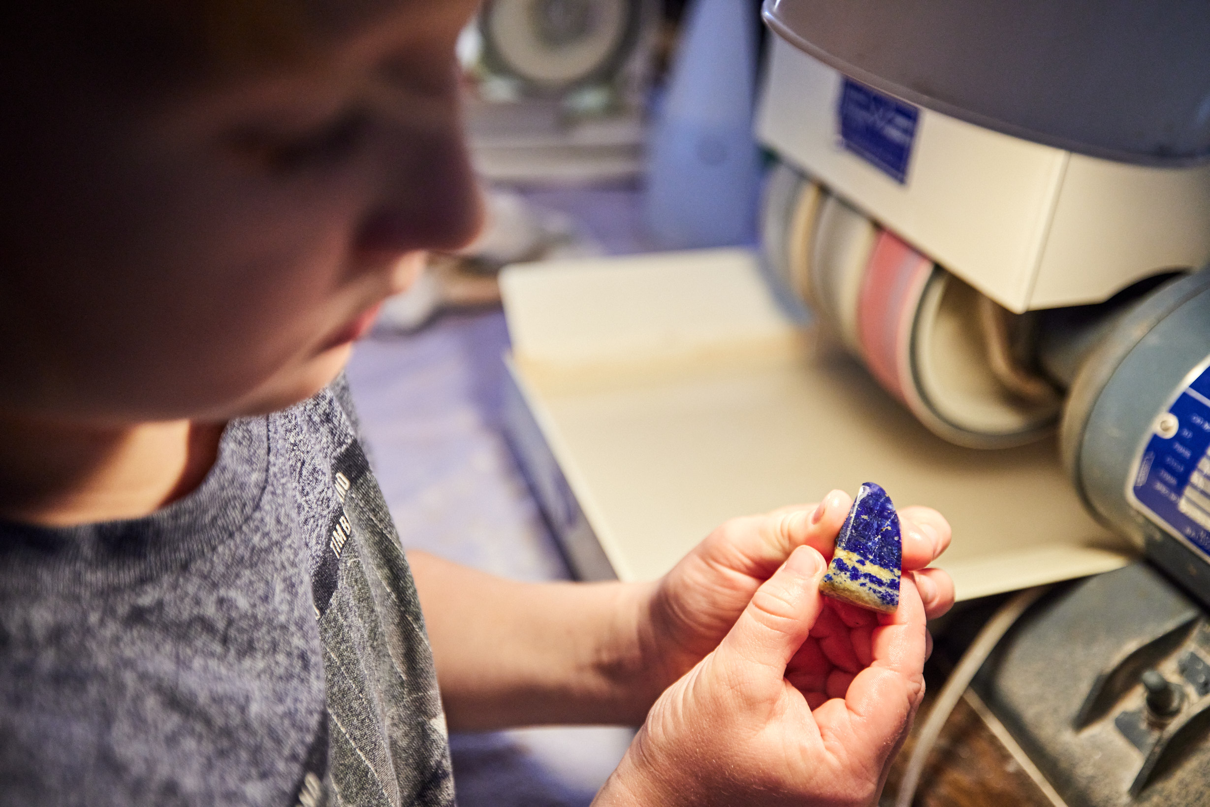 Our experienced helpers explain everything patiently and in a child-friendly way. Whether using a polishing machine or by hand with sanding sponges, each child decides for themselves how to make their stone shine.