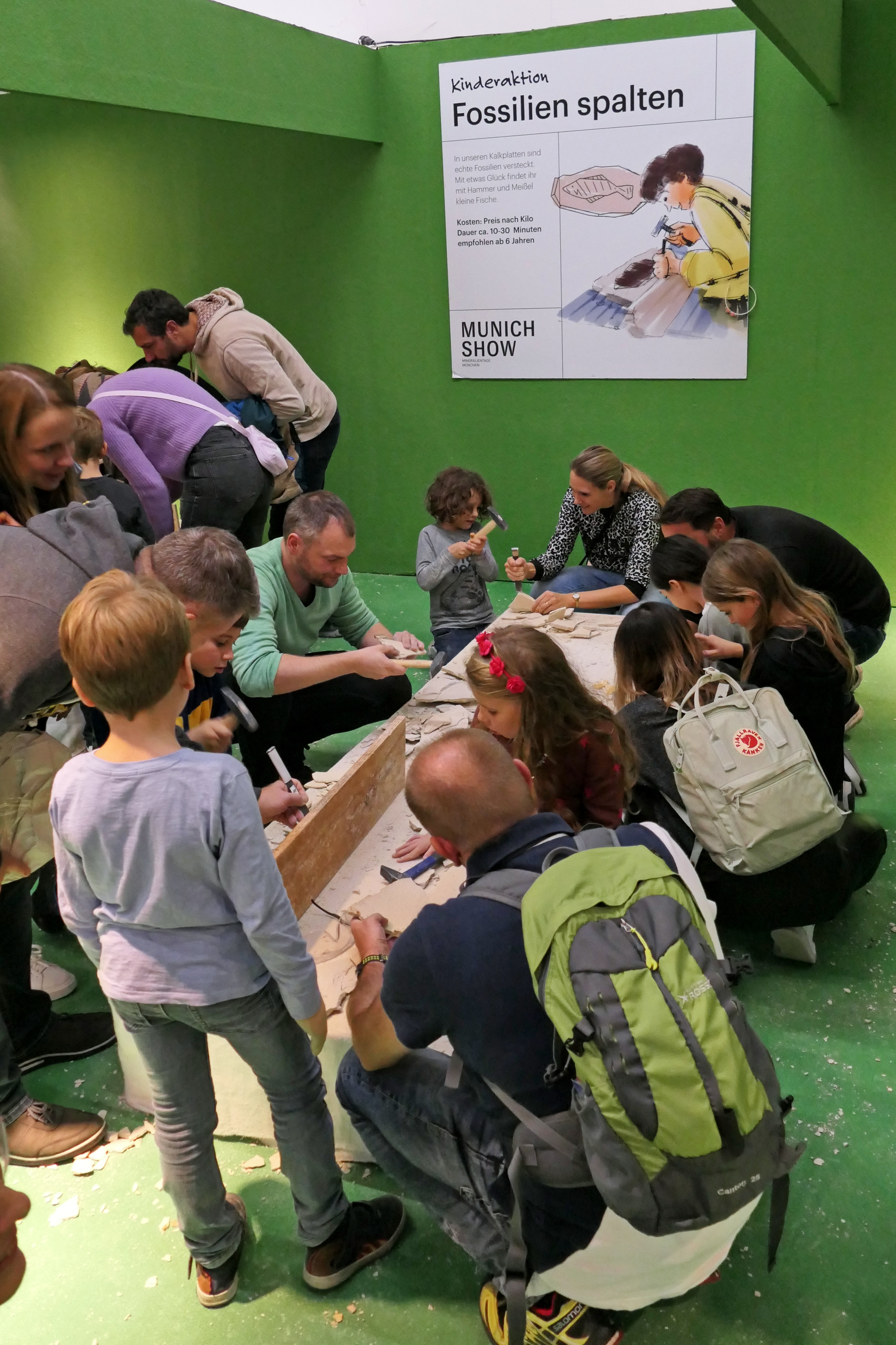 The answers to the questions can be found at various stands within the exhibition. Children explore the Munich exhibition grounds in a playful and mysterious way. On the discovery tour, there is plenty of interesting information to learn about minerals, fossils, meteorites, and gemstones.