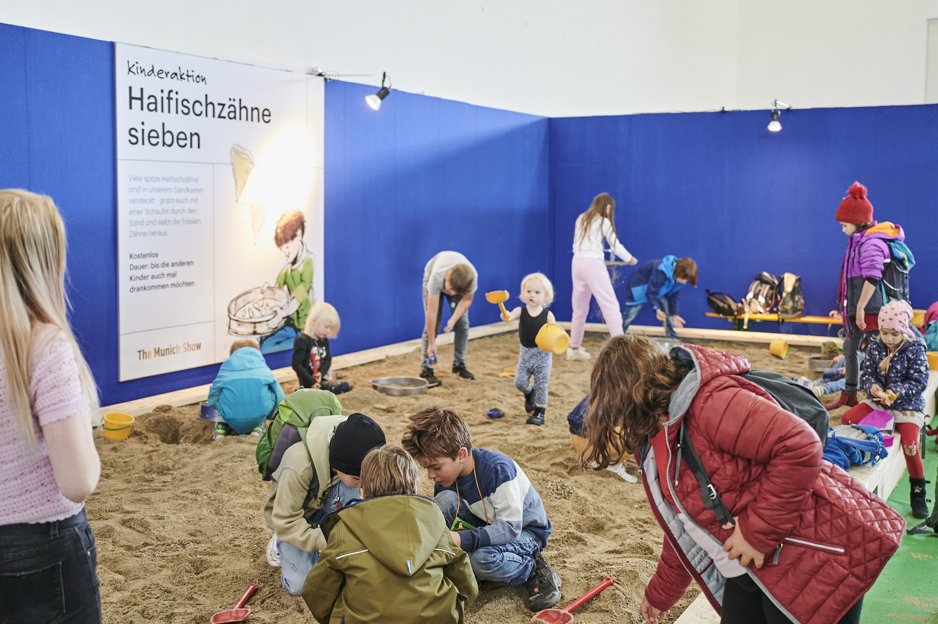 For this reason, fossilized shark teeth are found relatively often. At the Munich Show, children can go on a search themselves: with a shovel and sieve in the large sandbox, they can playfully discover how exciting paleontological discoveries can be. A little adventure for young fossil researchers.