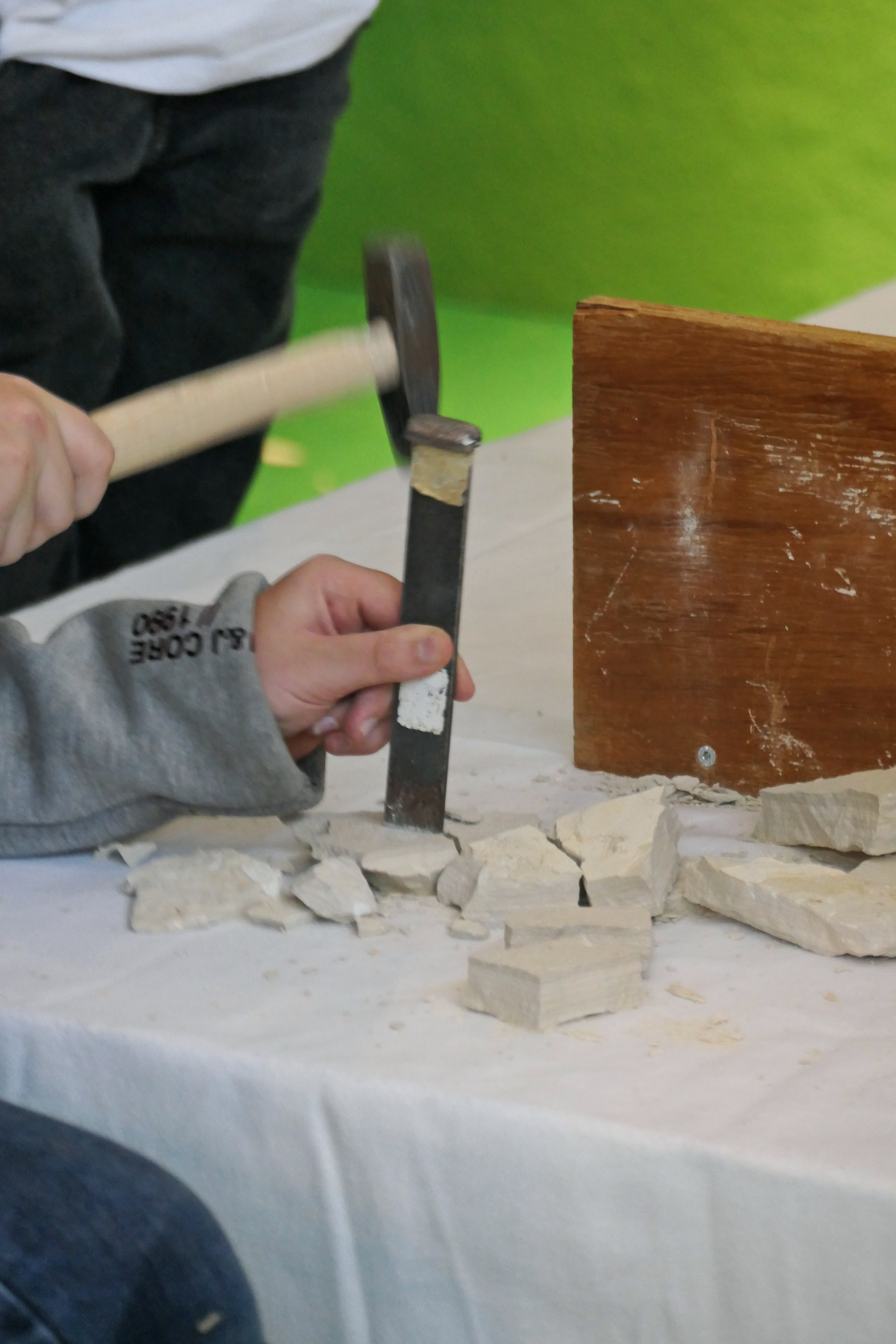 The activity is supervised by expert staff who explain how to work safely and effectively, but are also happy to answer questions about fossils and how they were formed.